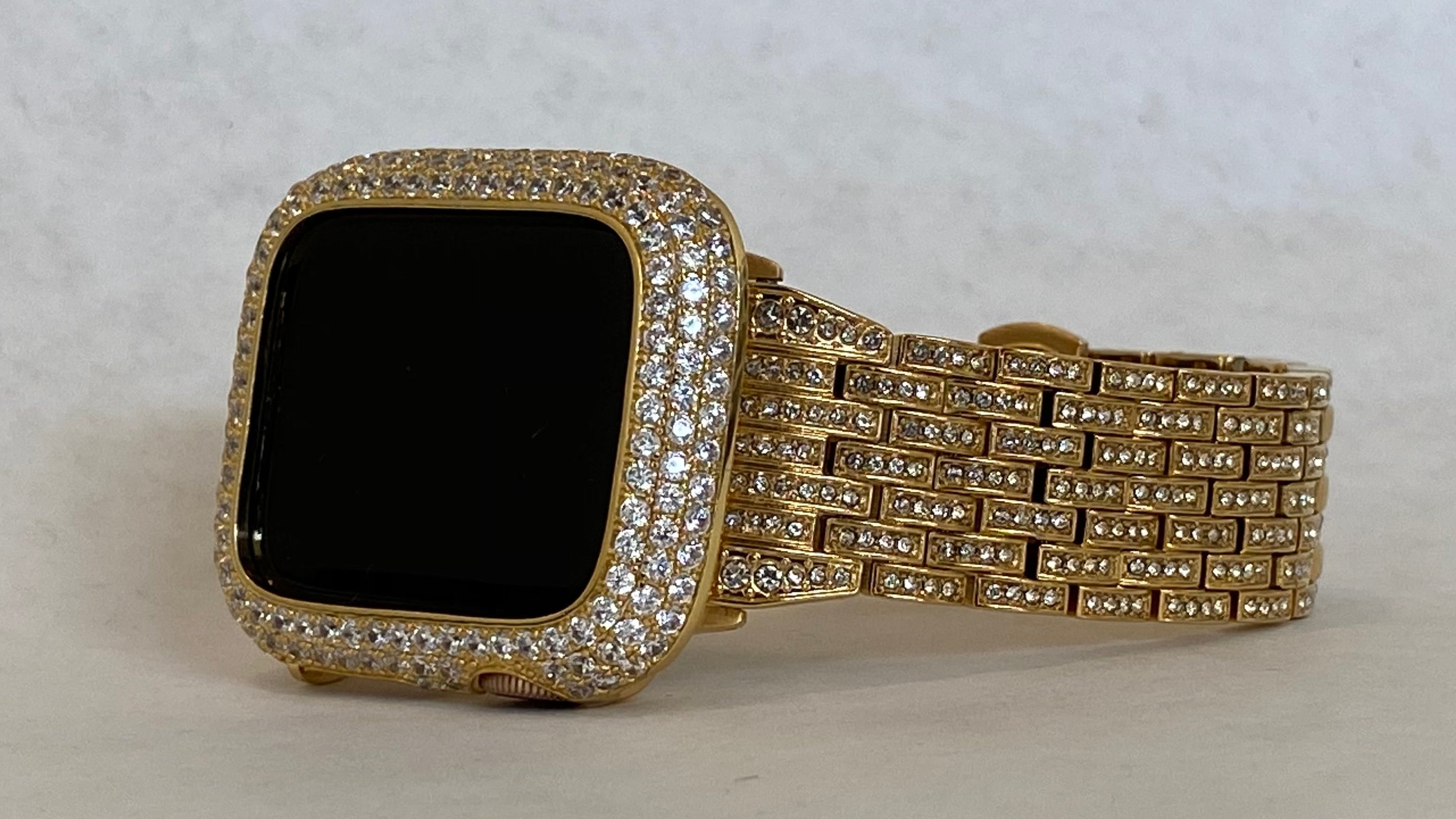 Designer Gold Apple Watch Band 49mm Ultra Mens Crystal & or Apple Watch Case Lab Diamond Bezel Apple Watch Cover 38mm-45mm