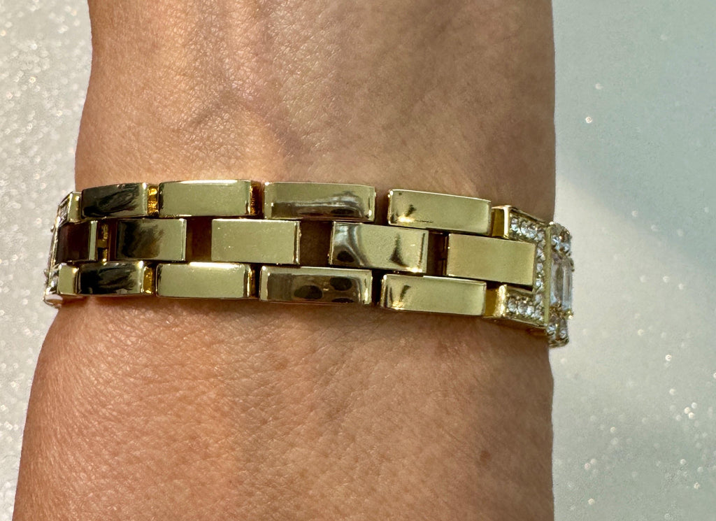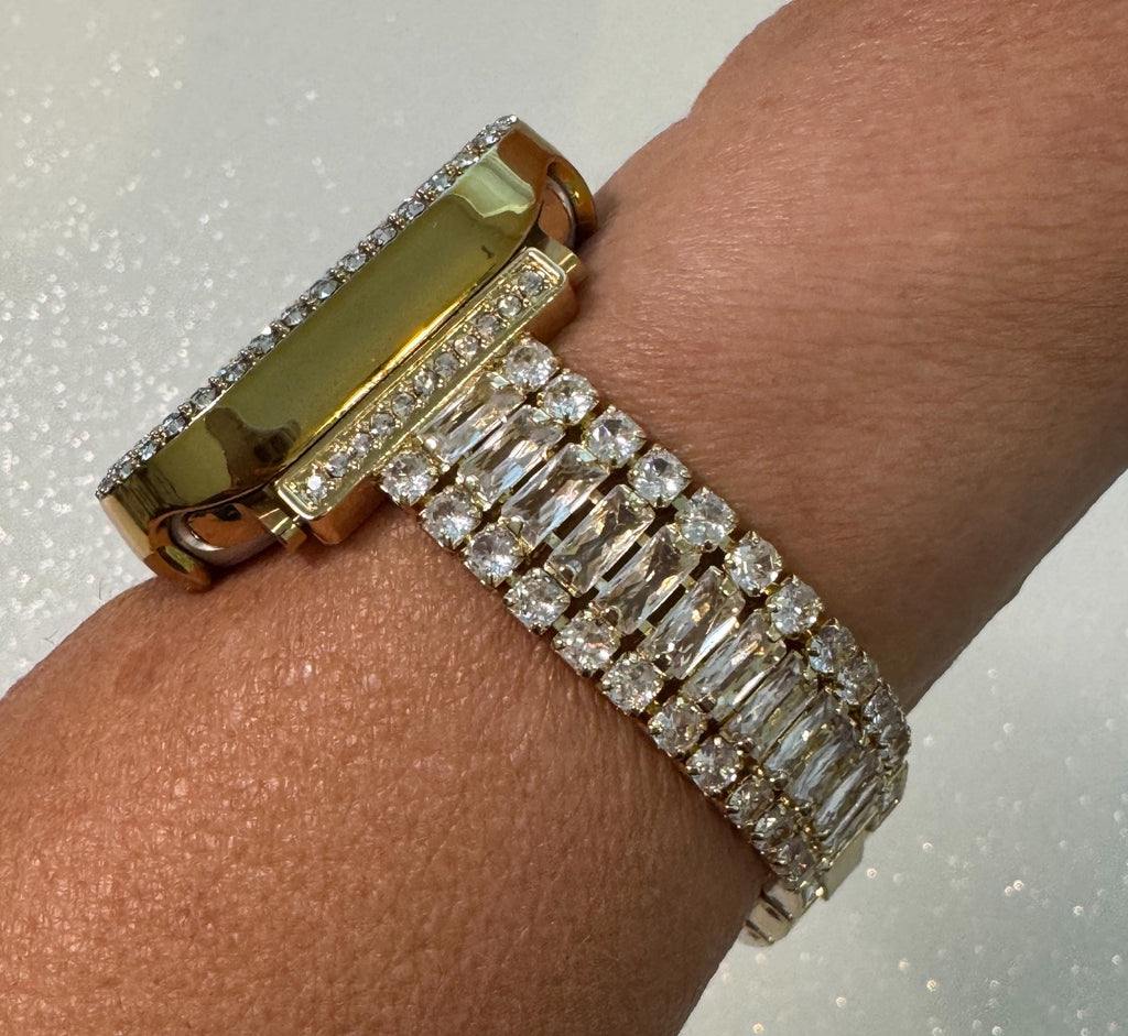 Apple Watch Band Material: Gold Alloy plating for durability and shine with hand set Baguette and round Swarovski Crystals Elements