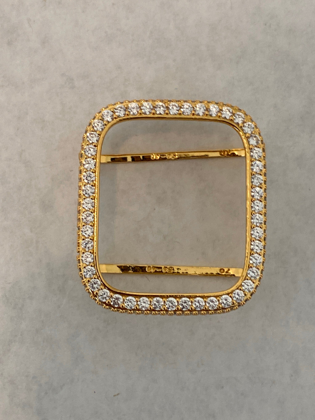 Pair it with an iced Out Gold Apple Bezel 14k gold plated Metal style case cover with Large 2.5mm lab diamonds around the face and micro pave lab diamonds on the sides. Huge Sparkle and Bling. Photos just don't do this bezel justice...mega sparkle.