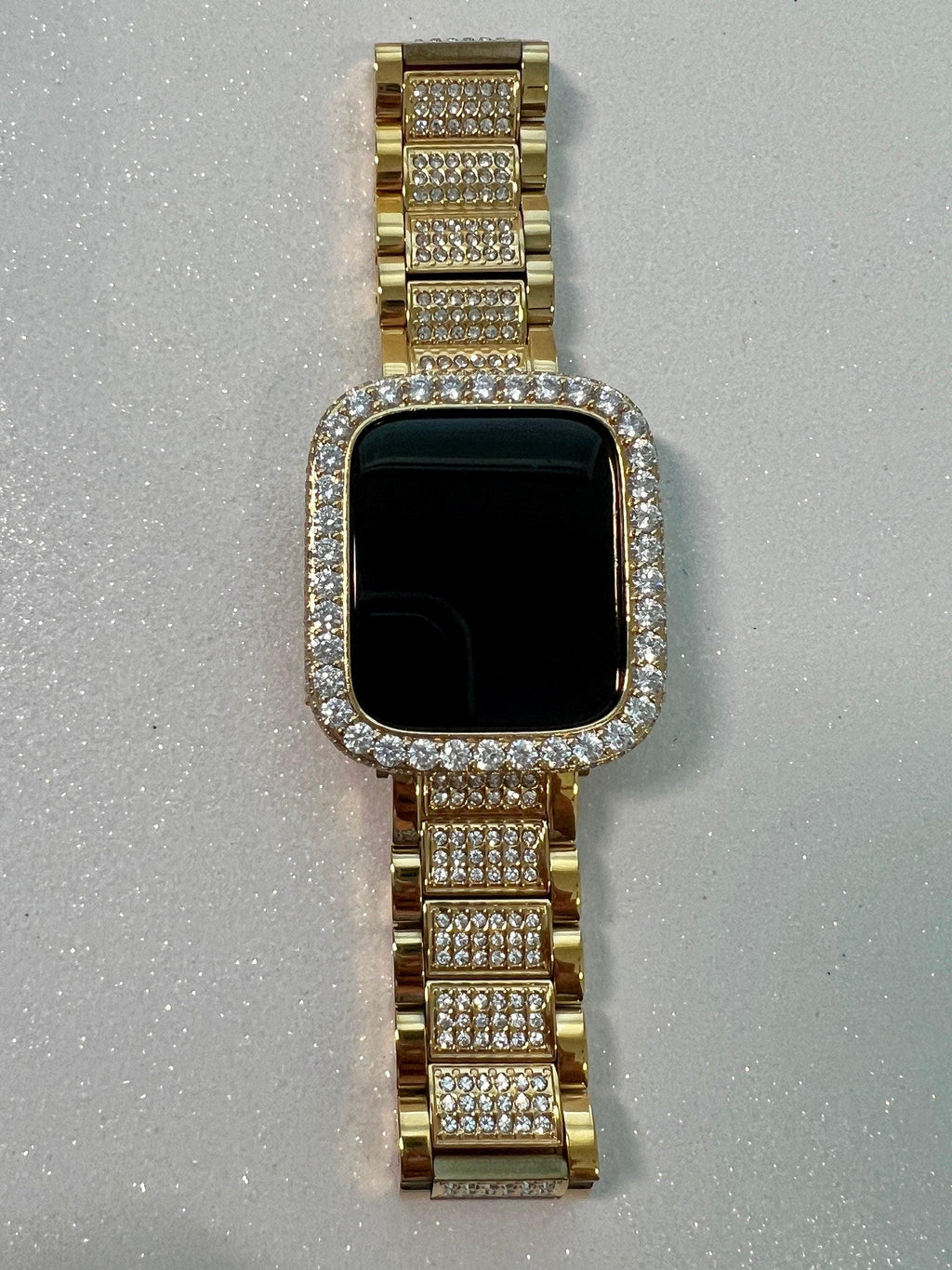 Materials: Swarovski Crystals apple band, stainless steel apple band, lab diamonds apple case, 14k gold plating apple case.