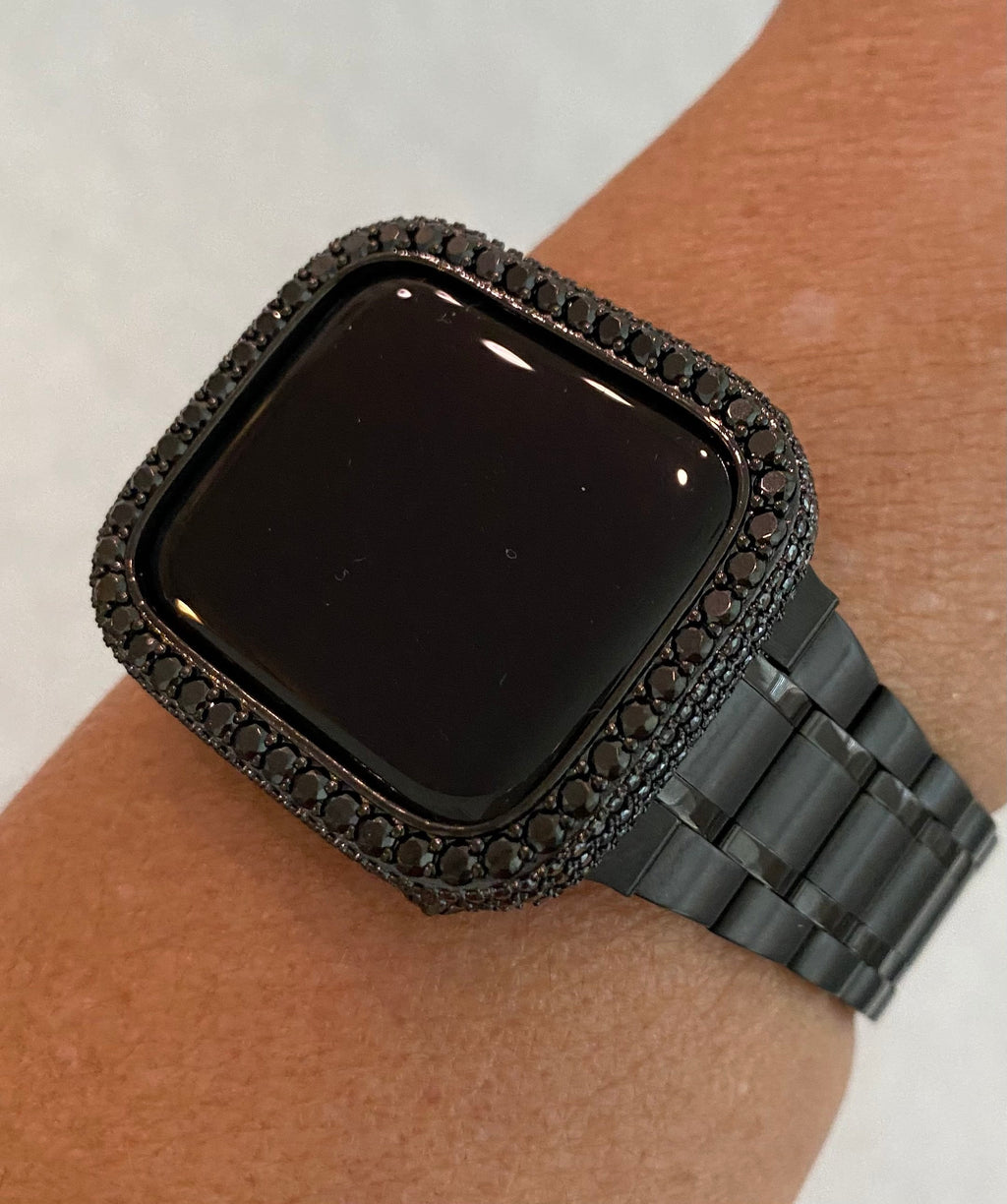 Add a Black on Black custom 14k Rhodium plated Metal Case Cover Bezel with hand set micro pave lab diamonds. Snap closure, easy to get on and off. Access to all button.
