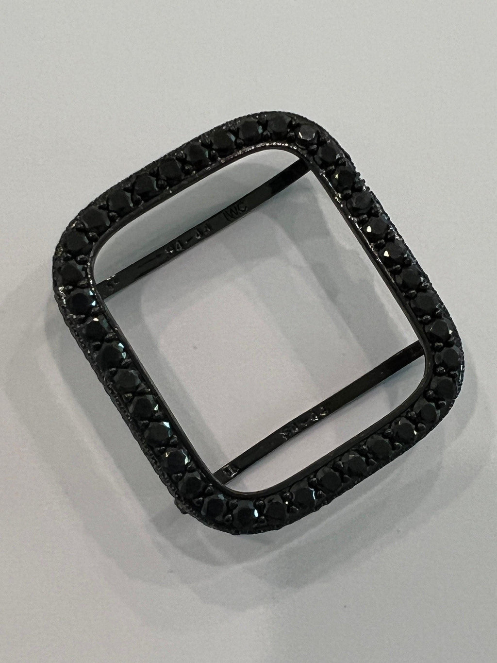 Add a Black on Black Apple Watch Case Cover Iced Out Custom Black 14k Gold Plated Metal Bezel with high quality 2.5mm lab diamonds around the face and micro pave lab diamonds on the sides. Huge Sparkle and Bling. Photos just don't do this bezel justice...mega sparkle. Two bars on the back hold the watch firmly in place, easy to get on and off. Access to all button.