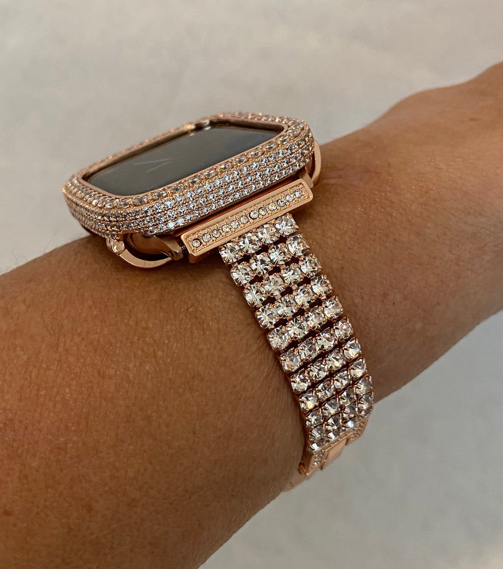 Apple Watch Band Material: Rose Gold Alloy for durability and shine with hand set Swarovski Crystals Elements