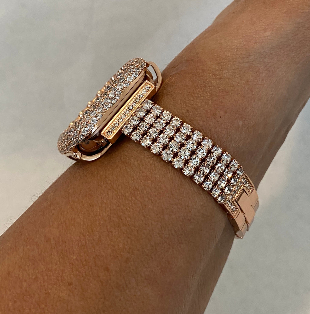 Apple Watch Band Material: Rose Gold Alloy for durability and shine with hand set Swarovski Crystals Elements