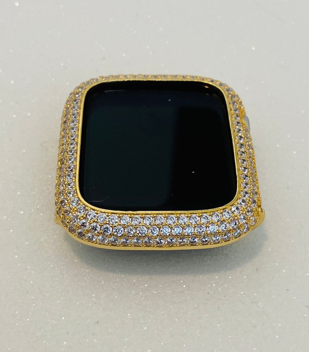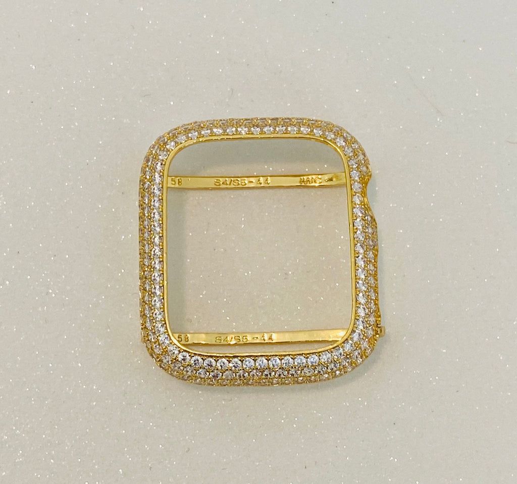 Gold Iced Out Custom 14k Gold Plating Metal Bezel style case cover with micro pave lab diamonds. Snap closure, easy to get on and off. Access to all button.