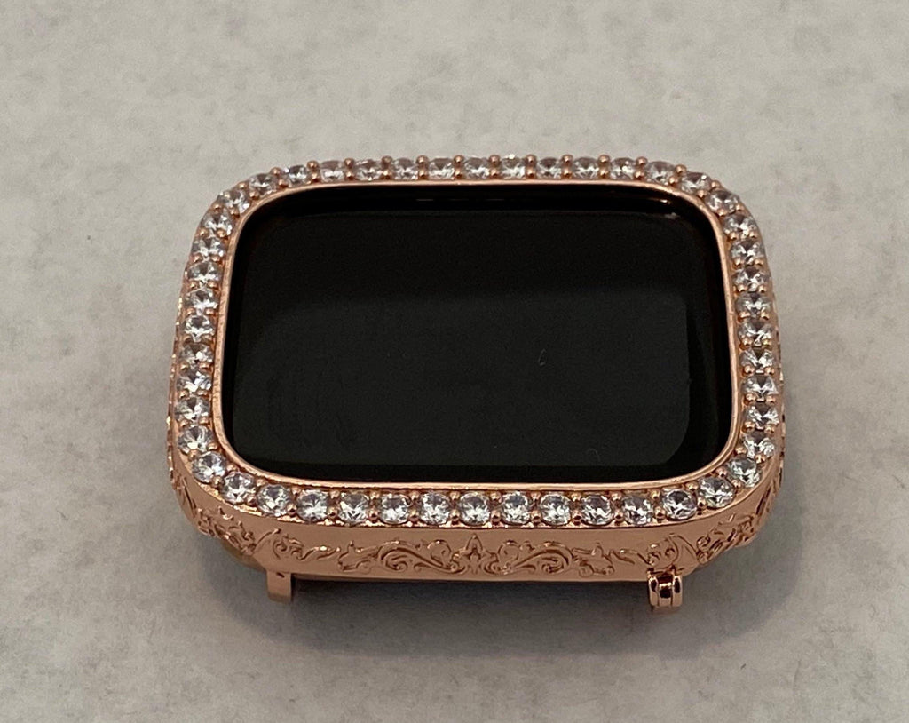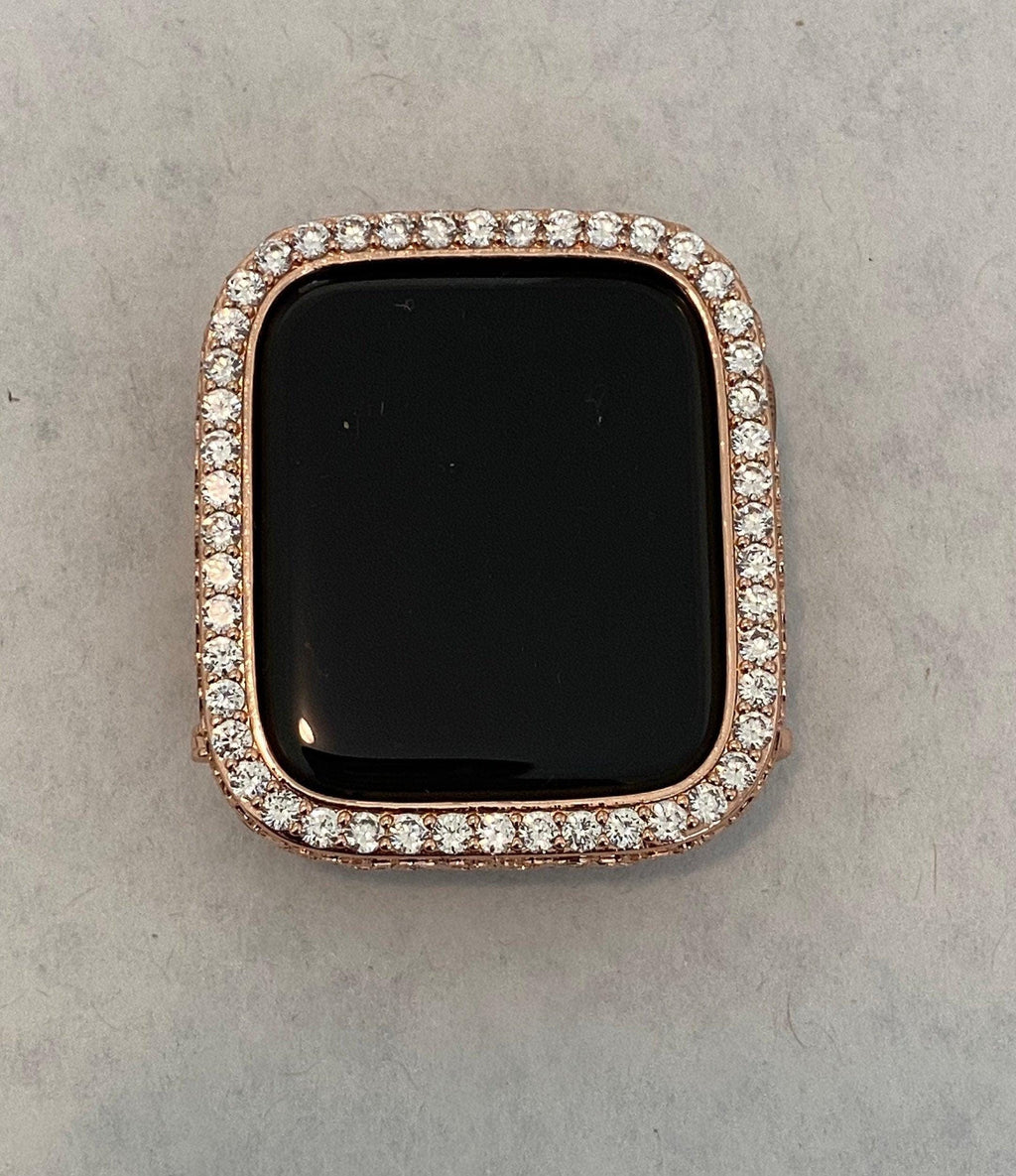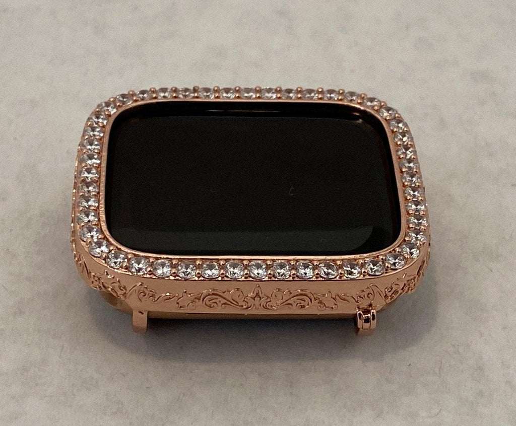 Apple Watch Series 9 41mm or 45mm same size as Series 7/8 (use that selection) and 49mm Ultra 1 (use that selection) or 2 same size. Fits the Apple Watch available for sizes 40mm,and 44mm in series 4,5,6 or SE Men's & Women's. Custom Apple Watch Bezel Case Cover Bezel Rose Gold For Apple Watch Band Bling 2.5 High End Crystals around the face with elegant engraving around the sides. . Listing is for bezel only, band in photo and video is not included. Fits series 4-6 and SE.
