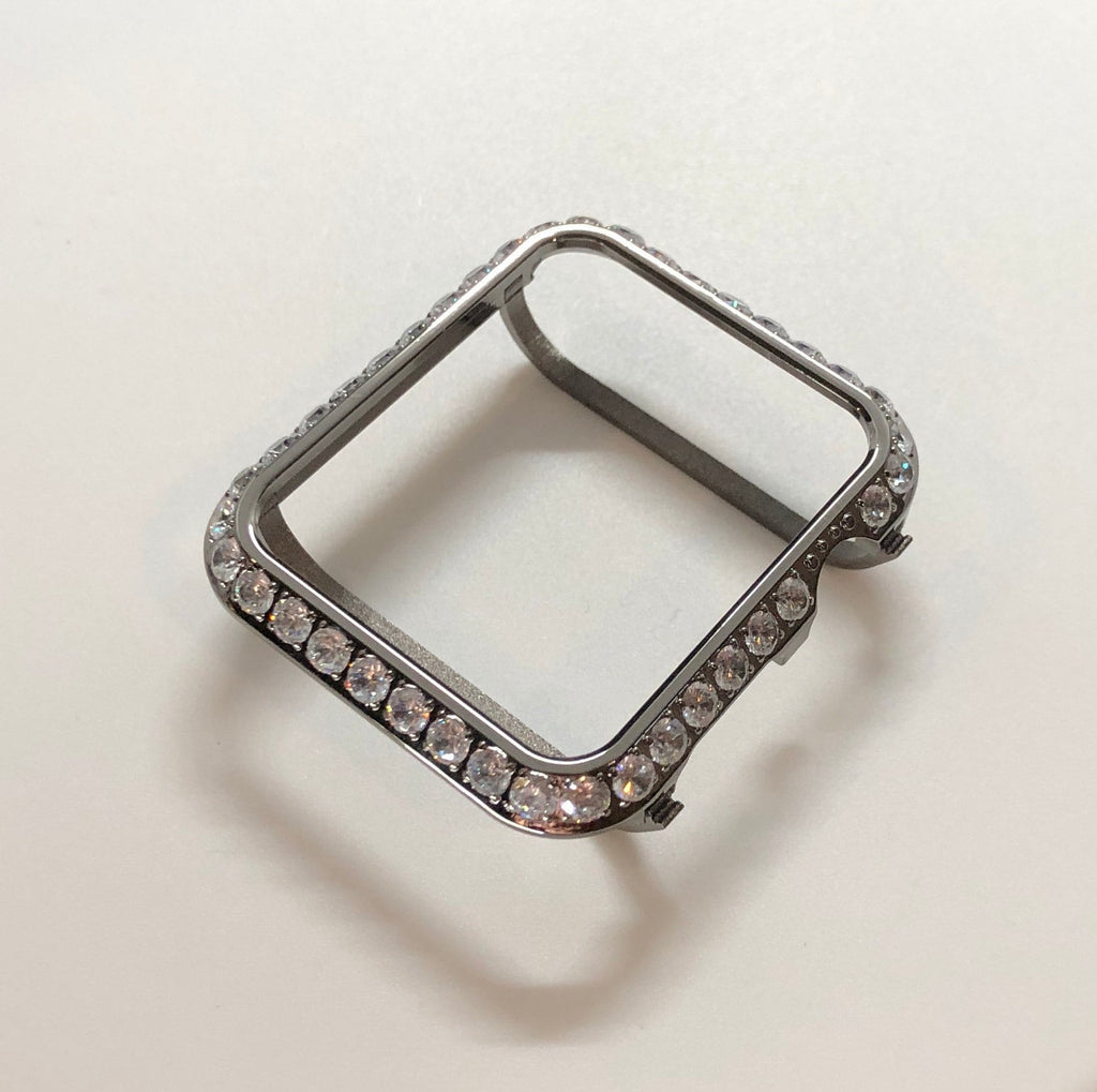 Apple Watch Series 9 41mm or 45mm same size as Series 7/8 (use that selection) and 49mm Ultra 1 (use that selection) or 2 same size. Fits the Apple Watch available for sizes 38,40,42 and 44mm in series 1,2,3,4,5,6 or SE Men's & Women's. Black Apple Watch Cover 38mm 40mm 42mm 44mm Mens & Women's Style. Iwatch Case Coverl is Metal Aluminum with 18K platinum plated,mirror finish with inset 3mm high quality lab diamonds claw set for great security for the stones. Bezel is Pretty Apple Watch Jewelry.