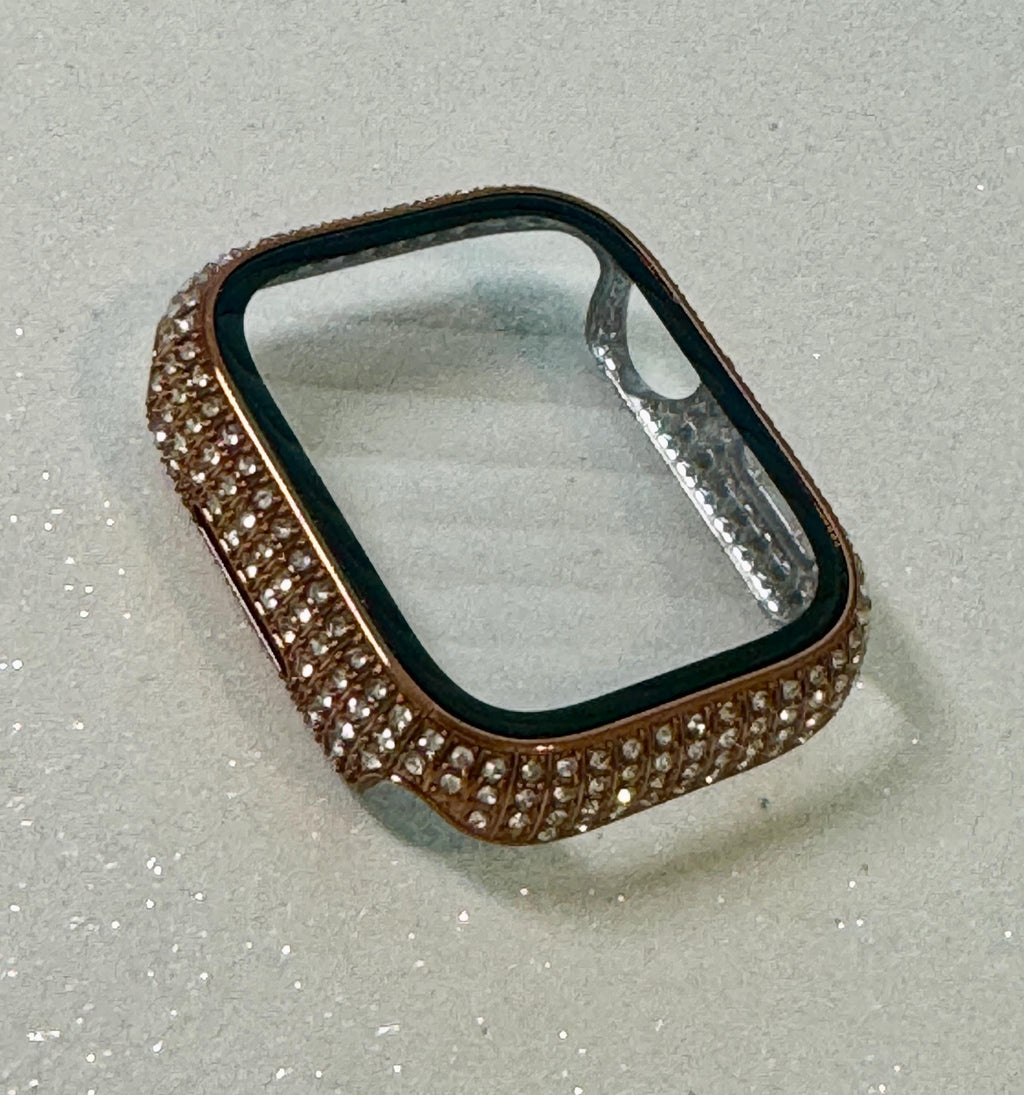 Apple Watch Case Materials: This metallic colored case (rose gold, yellow gold or silver) is studded with Swarovski Crystals set in a poly carbonate frame with a tempered glass screen protector. Snap on style with access to all buttons. This is not a metal case.
