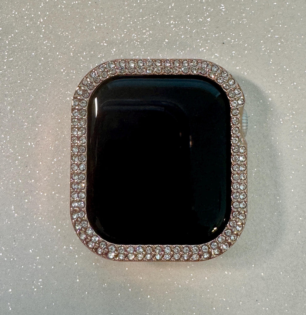 Apple Watch Case Materials: Metallic Rose gold poly carbonate case with 2 rows of high quality Swarovski Crystals with access to all buttons/speakers. The case is not metal and there is NO screen protector.