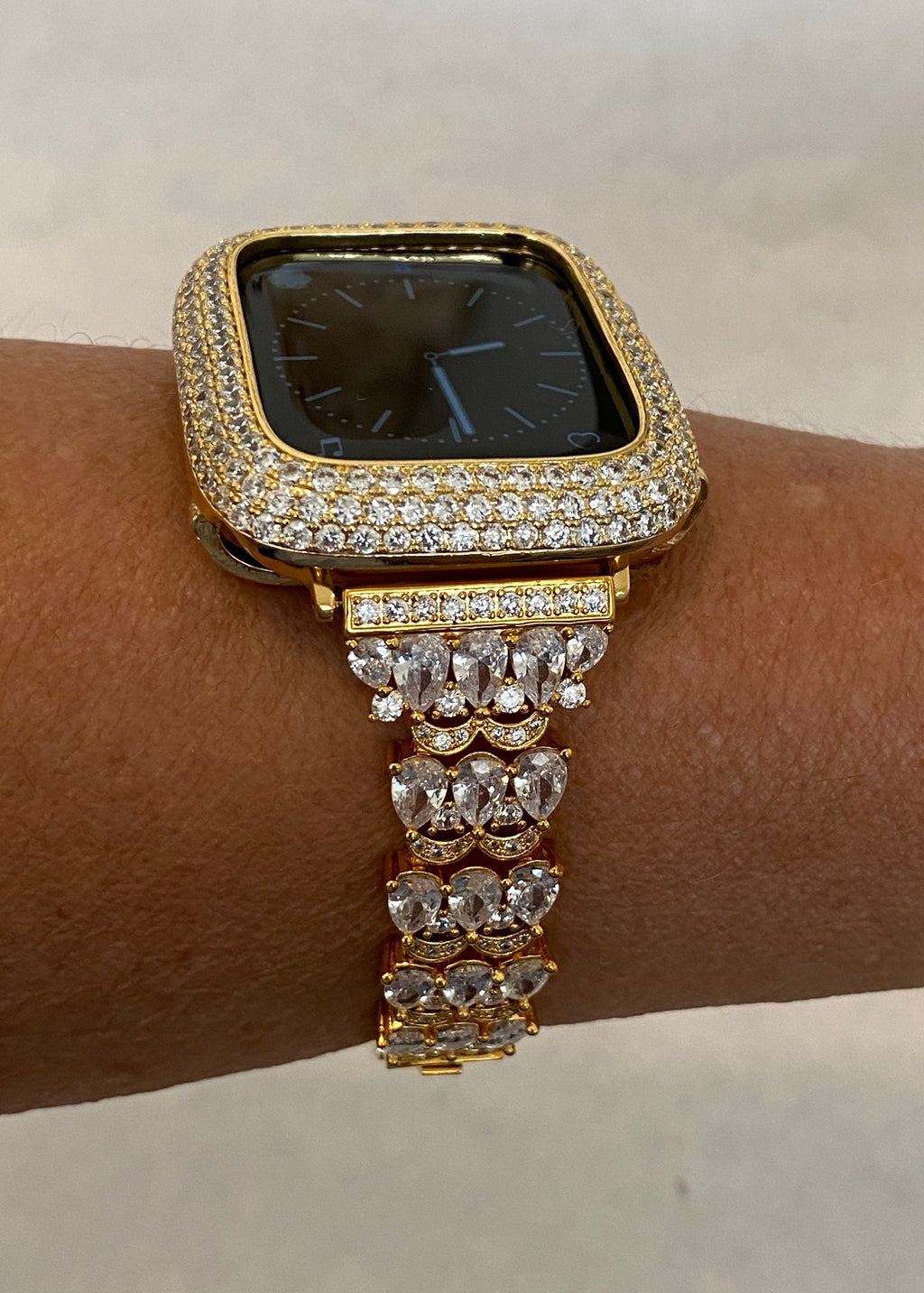 Materials: Swarovski Crystal apple band, gold alloy plating apple band, lab diamonds apple case, 14k gold plating apple case.