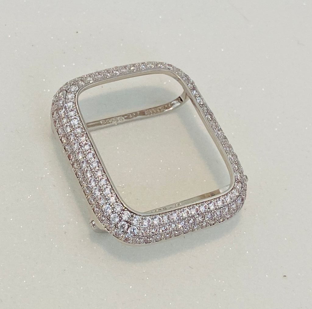 For a touch of sparkle and luxury, consider adding our Silver Apple Watch Case in 14K White Gold Plated Metal, featuring hand-set Pave Lab Diamonds. This case comes with two bars on the back to securely hold your Apple Watch in place, while still allowing easy access to all buttons. Please note that this case is not compatible with the all-ceramic white Apple Watch.
