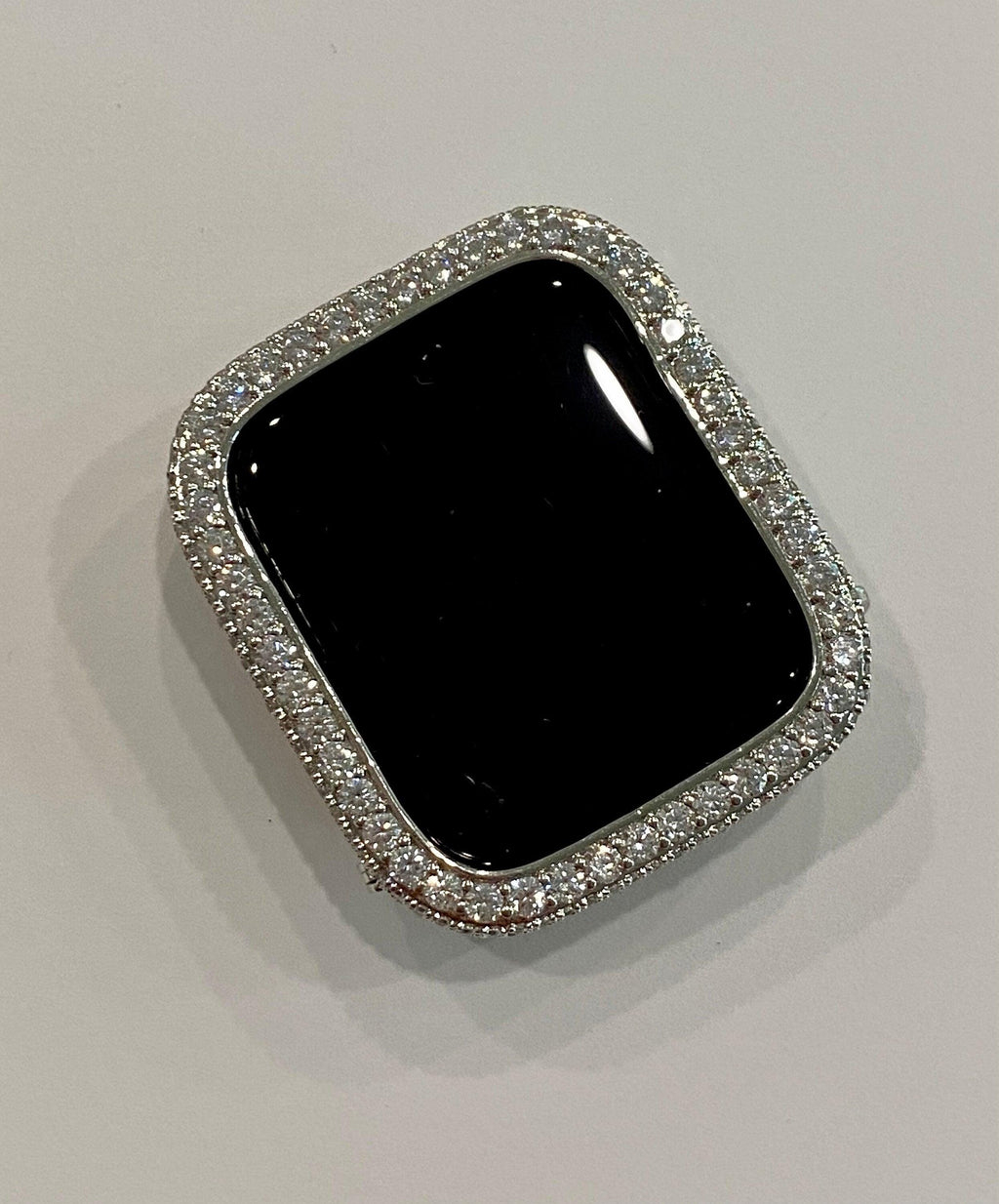 Add a Silver custom 14k white gold plated Metal Case Cover Bezel with hand set 2.5mm and micro pave lab diamonds. Snap closure, easy to get on and off. Access to all button.