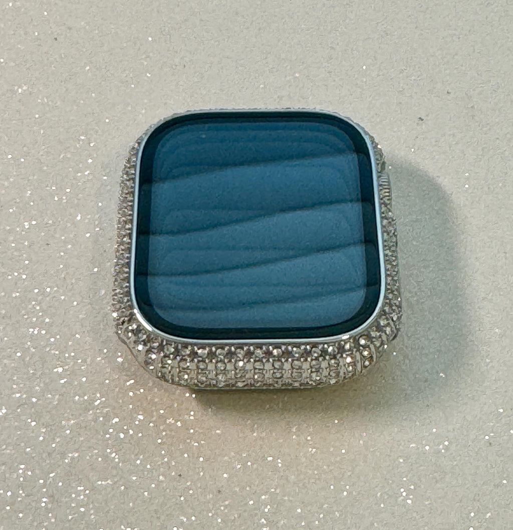 This Silver 14k White Gold Plated Apple Watch Case is compatible with Apple Watch sizes 41mm, 45mm in Series 7/8/9, 42mm, 46mm Series 10/11. Products are designed by Iwatch Candy and made custom to our specifications.