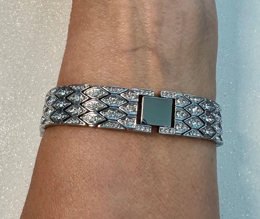 Apple Watch Band Material: Silver Alloy for durability and shine with hand set Swarovski Crystals Elements