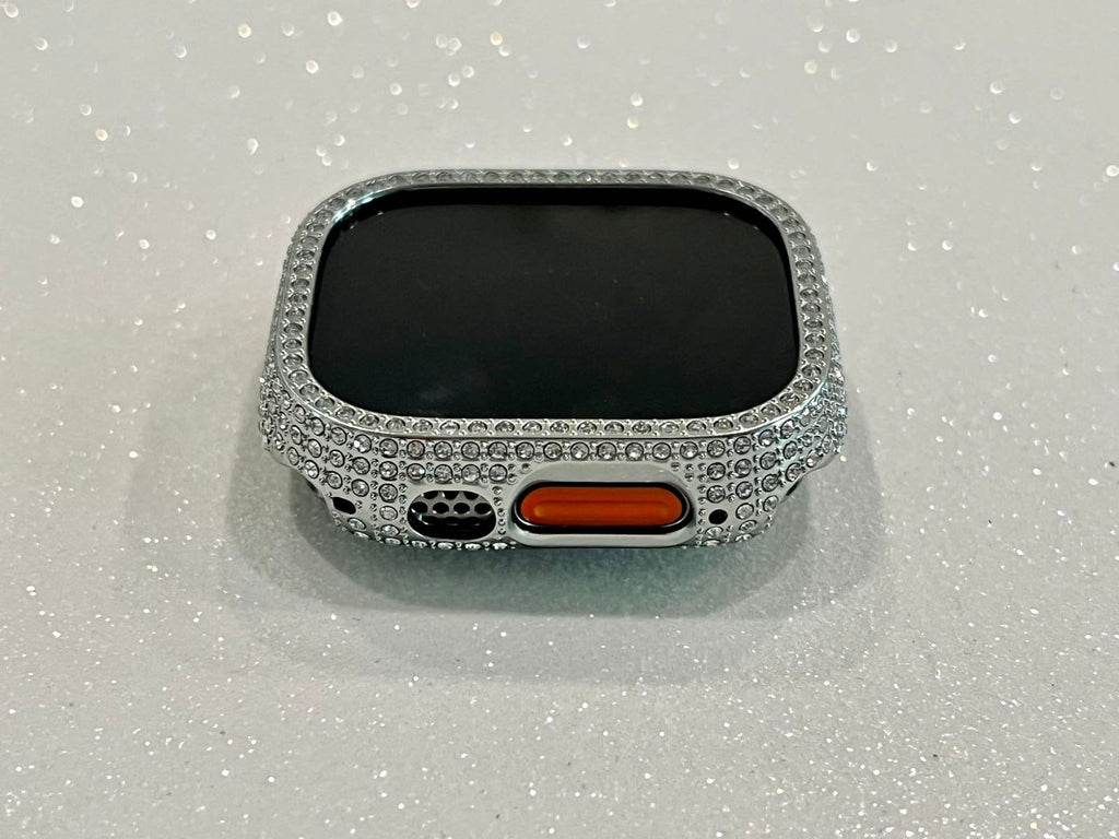Add some sparkle and style to your Apple Watch with our custom Ultra 49mm Silver High End Swarovski Crystal Case from Iwatch Candy. This snap-on style case is designed specifically for the 49mm Apple Watch Series 1 or 2, and is made from a durable poly carbonate hard frame. The stunning case is made with CRYSTALLIZED™ - Swarovski Elements set in a sleek silver finish, adding a touch of elegance to your watch. This fits only the 49mm Ultra not any other sizes.