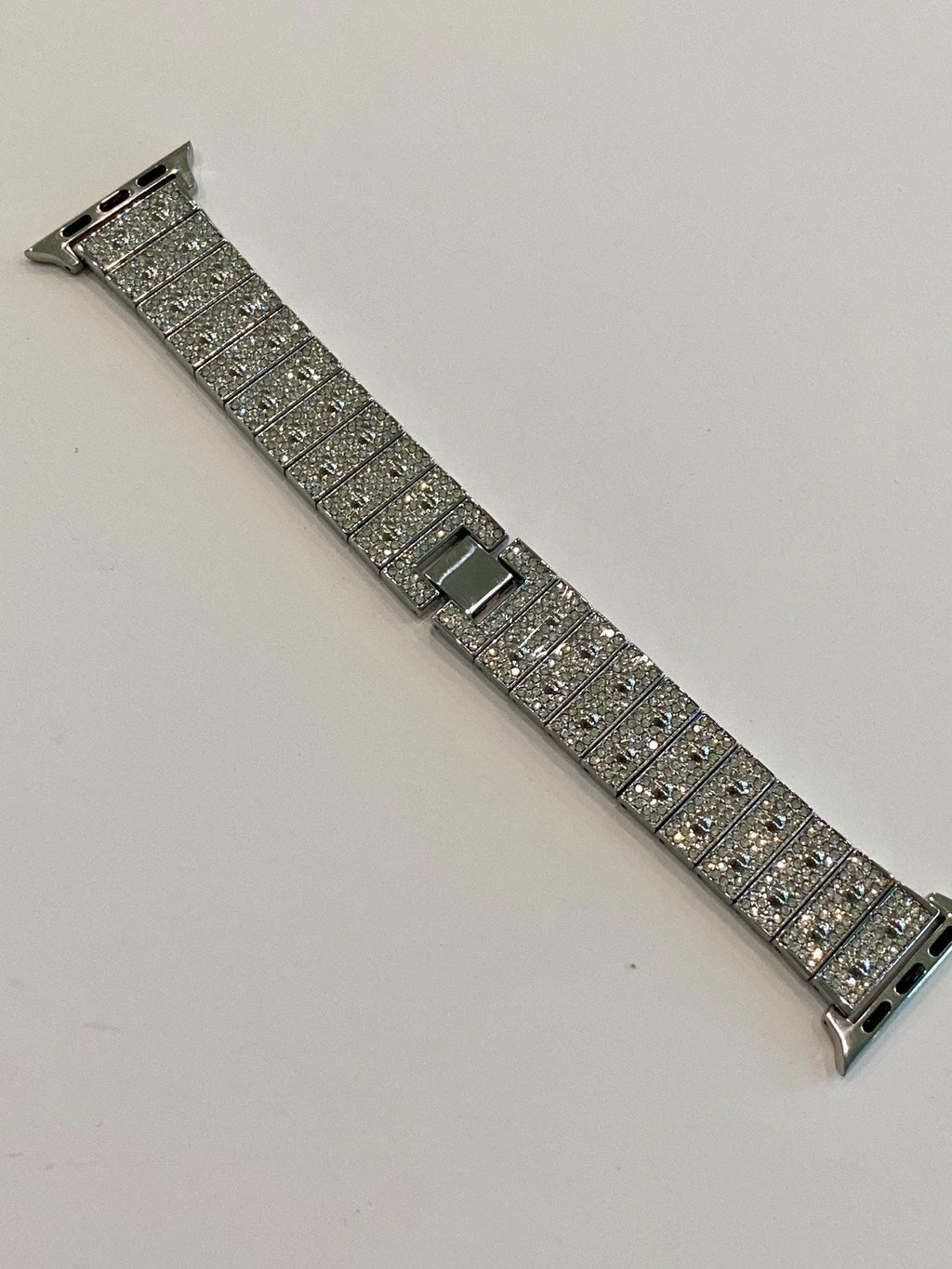 Fits the Apple Watch Sizes 38mm 40mm 41mm 42mm 44mm 45mm 46mm 49mm Ultra 1/2/3 Series 2-11 SE. This is a custom Iwatch Candy Apple Watch Band in Silver set with High End Swarovski Crystals in a luxury Alloy Metal for extra shine and durability & or Silver Apple Watch Cover with Swarovski Crystal set in a Metallic Poly Carbonate hard frame. The sparkle on this band is amazing. Can be adjusted to fit wrist sizes from 5.5" to 7.25". Easy to resize and comes with a tool/instructions. You can select the set band+bezel, band only or bezel cover only using the drop down menus.
